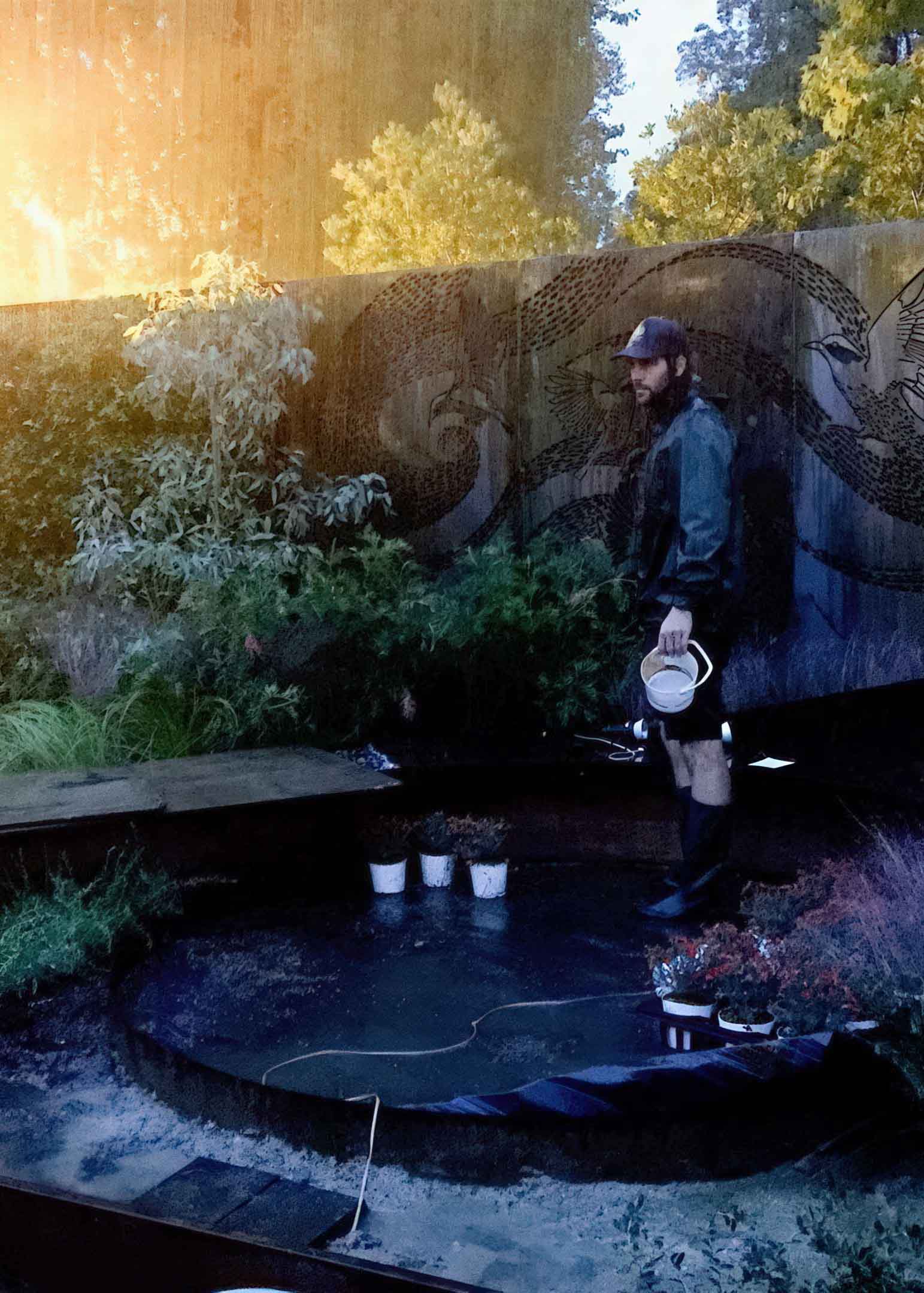 Material selection and composition are guided by repetition and rhythm, with textures, shapes, and colour working together to create balance and cohesion. The result aligns with modern garden aesthetics, while still maintaining a strong narrative rooted in the original artwork.